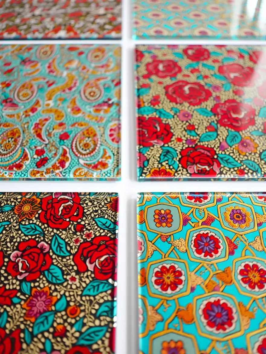 کیفیت بالا و جزئیات دقیق: یکی از بزرگترین مزایای چاپ یووی، کیفیت بالای تصاویر و جزئیات است. جوهرهای یووی بهطور مستقیم روی سطح شیشه خشک میشوند و از آنجایی که جوهر به سرعت خشک میشود، از پخش شدن رنگ جلوگیری میشود و در نتیجه طرحها با دقت بسیار بالا چاپ میشوند.